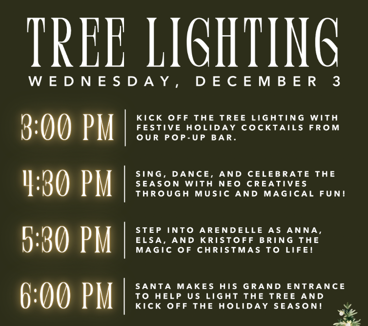 Join us at Valor Square for our Tree Lighting with Special Guests from the Frozen cast performing and a special visit from Santa!